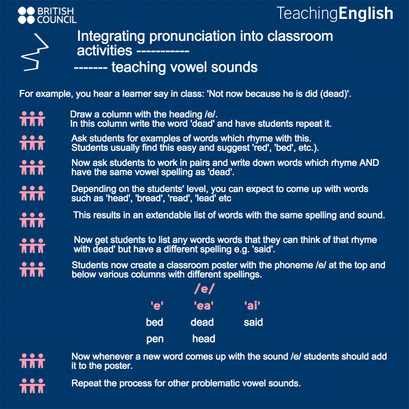 teacher silently mouths a sound and the learners say the sound;